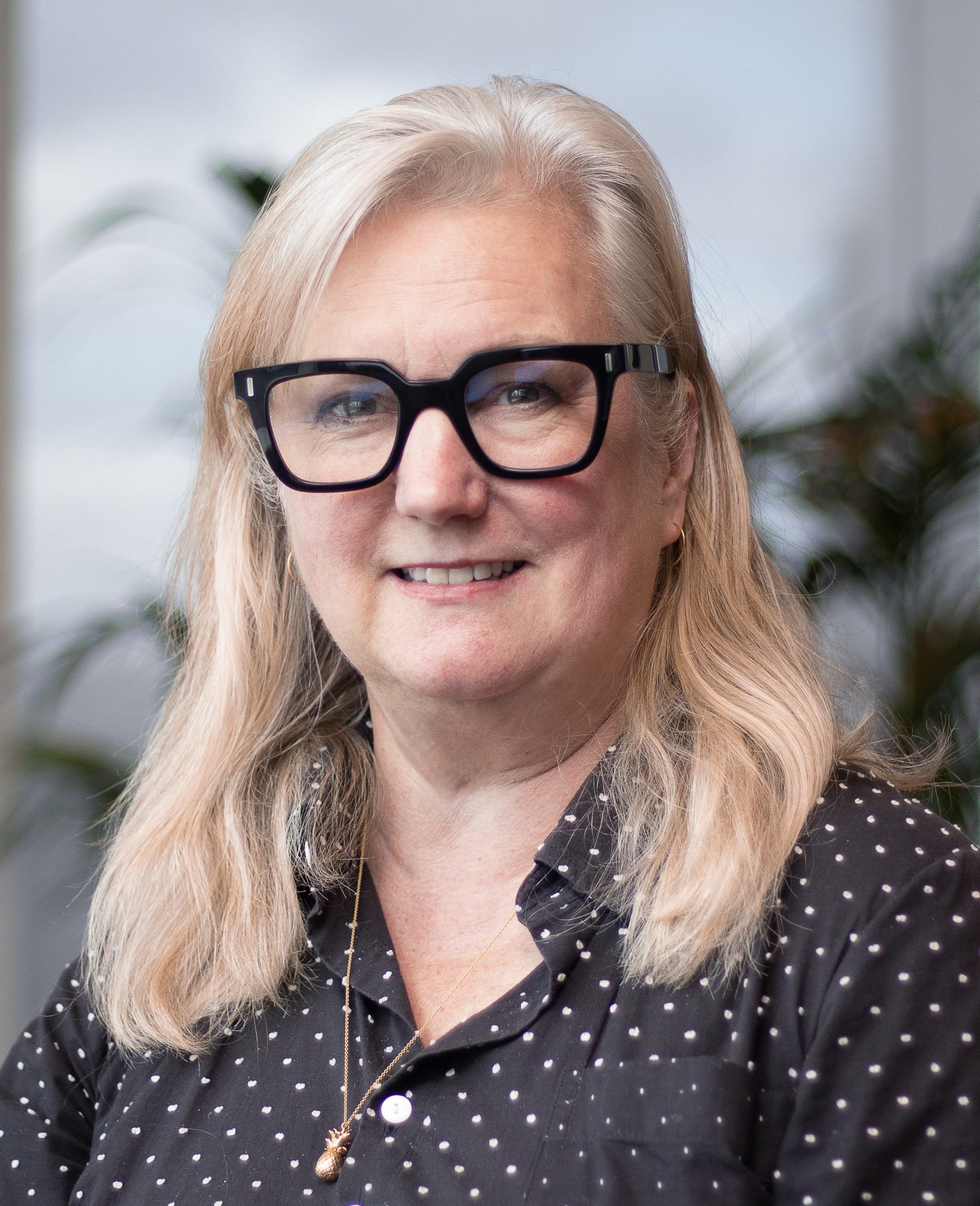 A woman with long blonde hair smiling in front of a white background at a London Cookery Class.